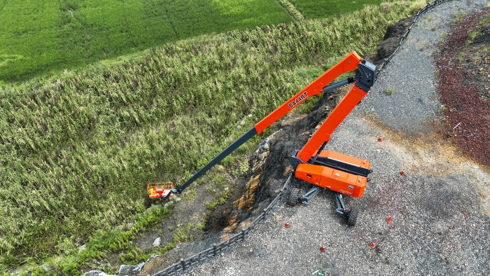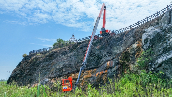 但其實,除了高度外,還有一項參數常常被人所忽視,那就是曲臂特有的下探本領。鑒于曲臂結構的特殊性,它不僅可以“上天”,還特別能“入地”——尤其是應對那些需要深度下探的復雜工況,比如礦坑作業、陡坡作業等。